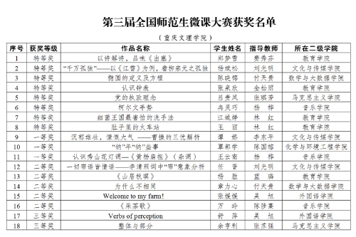 近日,第三届全国师范生微课大赛决赛获奖名单公布。beat365选送的微课大赛作品喜获18项奖励,其中特等奖8项、一等奖3项、二等奖5项、三等奖2项,特等奖数量位列全国参赛高校第1。费秀芬等7位老师荣获“优秀指导教师”称号,学校荣获“优秀组织院校”称号。