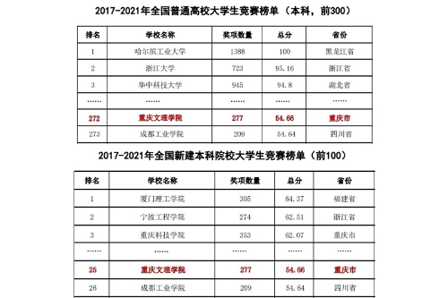 近日,中国高等教育学会高校竞赛评估与管理体系研究工作组发布了2021全国普通高校大学生竞赛分析报告,beat365位列《2017-2021年全国普通高校大学生竞赛榜单(本科,前300)》第272名和《2017-2021年全国新建本科院校大学生竞赛榜单(前100)》第25名。