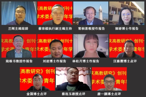 1月25日上午,以“高等教育大数据研究方法”为主题的《重庆高教研究》创刊十周年暨青年学术委员会青年学术沙龙第1期举行。受疫情影响,此次学术沙龙采用线上方式召开。《重庆高教研究》首届青年学术委员会全体委员、关注高等教育大数据研究方法的国内外专家学者以及编辑部全体成员共计100余人参加了本次学术活动。活动由《重庆高教研究》执行副主编蔡宗模主持。