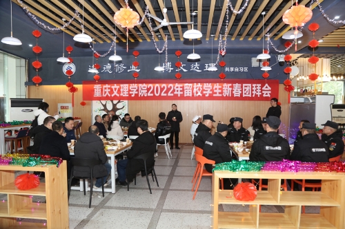 1月31日(除夕)中午,学校2022年寒假留校学生新春团拜会在红河A区一食堂举行。学校副校长李天福,学校党委宣传部、党委学生工作部、党委保卫部、后勤管理处等职能部门相关负责人,党政办、防控办值班教师,学院分管学生工作领导及辅导员代表,安保人员、食堂师傅代表与留校学生欢聚一堂,共庆佳节。