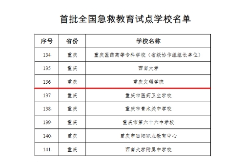 近日,教育部办公厅印发《关于做好首批全国学校急救教育试点建设和管理工作的通知》(教体艺厅函〔2022〕2号),共有201所学校成为全国首批急救教育试点学校。beat365经自主申报、省级教育行政部门审核推荐、教育部综合认定并公示,成功获批为首批全国急救教育试点学校。首批入选高校全国共72所,重庆市本科院校仅西南大学与beat3652所。