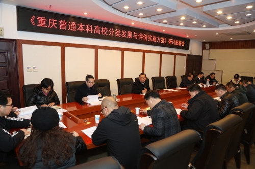 1月5日上午,学校在恪勤楼504室召开《重庆普通本科高校分类发展与评价实施方案》研讨部署会。校长黄伟九,党政办公室、党委宣传部、教务处、学生工作处、人事处、发展规划处、马克思主义学院、体育学院等相关职能部门及二级学院负责人参加了本次会议。会议由发展规划处处长何万国主持。