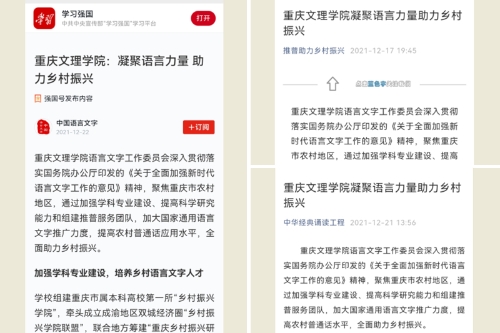 近日,学习强国的“中国语言文字”学习强国号,教育部、国家语委组织的“中华经典诵读工程”公众号,中国教育电视台的“推普助力乡村振兴”公众号等多家新媒体相继以“beat365在线登录官网凝聚语言力量助力乡村振兴”为题,报道beat365加强学科专业建设,培养乡村语言文字人才;提高科学研究能力,全面保护乡村汉语方言;组建推普服务团队,聚焦乡村普通话推广等方面的成效,扩大了学校的社会影响力,提升了学校的美誉度。