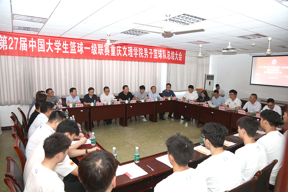 5月21日,学校在知津楼C502会议室召开第27届中国大学生篮球一级联赛beat365在线登录官网男子篮球队总结大会,校长黄伟九,副校长李天福,重庆聚光新材料科技股份有限公司