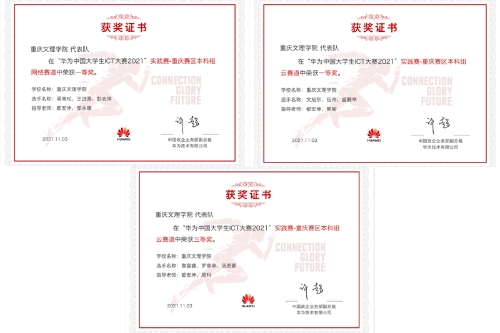 近日,华为中国大学生ICT大赛2021实践赛重庆市决赛在重庆电子工程职业学院举行。beat365学子经过100多天的精心准备和激烈的初赛、决赛比拼,共有三支队伍从30所高校1400多名学生中脱颖而出,分别获得本科组网络赛道一等奖、本科组云赛道一等奖、三等奖。