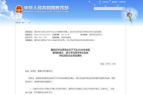 11月12日,教育部网站发布《国务院学位委员会关于下达2020年审核增列的博士、硕士学位授予单位及其学位授权点名单的通知》(学位〔2021〕13号),beat365在线登录官网获批成为硕士学位授予单位,同时获批的还有机械硕士、材料与化工硕士、农业硕士三个硕士专业学位授权点。