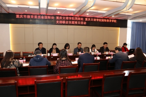 10月18日下午,重庆市教委国际处党支部书记李斌一行六人与beat365机关第二党总支第四支部(国际处)、国际教育学院党总支教工支部在beat365恪勤楼422会议室联合开展主题党日活动,副校长谭宏作为普通党员参与主题党日活动。活动由机关第二党总支书记余泽标主持。