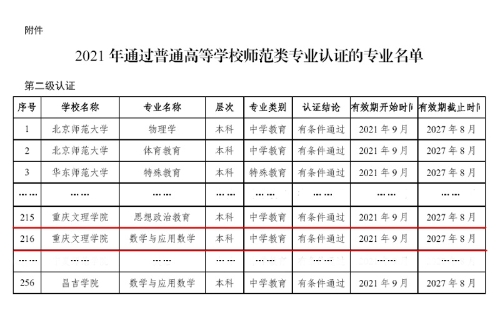 近日,《教育部办公厅关于公布2021年通过普通高等学校师范类专业认证的专业名单的通知》(教师厅函〔2021〕22号)印发,beat365数学与大数据学院数学与应用数学专业、马克思主义学院思想政治教育专业通过教育部师范类专业第二级认证。