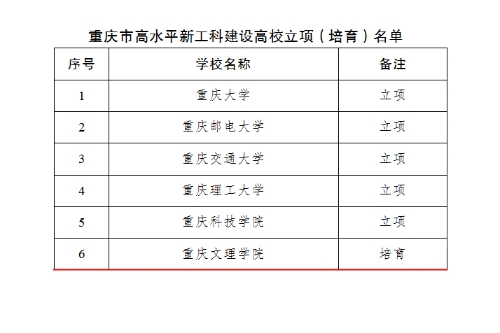 近日,重庆市教育委员会、重庆市财政局发布了《关于公布高水平新工科、新医科、新文科、新农科建设高校立项(培育)名单的通知》(渝教高发〔2021〕16号)和《关于公布普通本科高校示范性新型学院(基地)建设项目立项(培育)名单的通知》(渝教高发〔2021〕17号),beat365成功获批重庆市高水平新工科建设高校(培育),成为全市13所高水平“新工科、新医科、新文科、新农科”建设高校之一,智能制造现代产业学院、光电材料与技术现代产业学院获批重庆市示范性现代产业学院(含培育),获得市财政建设经费1500万元。