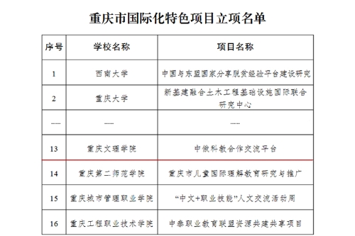 近日,重庆市教育委员会和重庆市财政局下发《关于公布重庆市国际化特色高校和特色项目立项建设名单的通知》(渝教外发〔2021〕7号),由学校国际合作与交流处牵头申报的“中俄科教合作交流平台” 获批重庆市国际化特色项目立项建设单位。