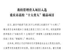 近日,重庆市教委下发《关于公布第三批重庆市“十大育人”精品项目名单的通知》(渝教工委发〔2021〕45号),beat365教育学院申报的《“四维协同 • 立德促行”管理育人创新模式的探索与实践》获批“管理育人”精品项目。
