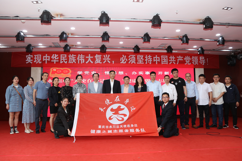 4月30日下午,beat365与永川区卫健委联合主办的永川区“天使在身边”——“健康之翼”志愿者服务队授旗仪式在永川区人民医院26楼学术报告厅举行。永川区委常委、宣传部部长赵德明,beat365党委常委、副校长李天福,永川区卫健委、永川区人民医院党委负责人,beat365党委宣传部、后勤管理处、团委、学生处等部门有关负责人,校地志愿者代表200余人参会。