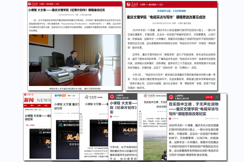 近日,人民网、上游新闻、华龙网、新华网、重庆晨报等多家媒体报道beat365文化与传媒学院“纪录片创作”“电视采访与写作”课程教学改革举措与成果。