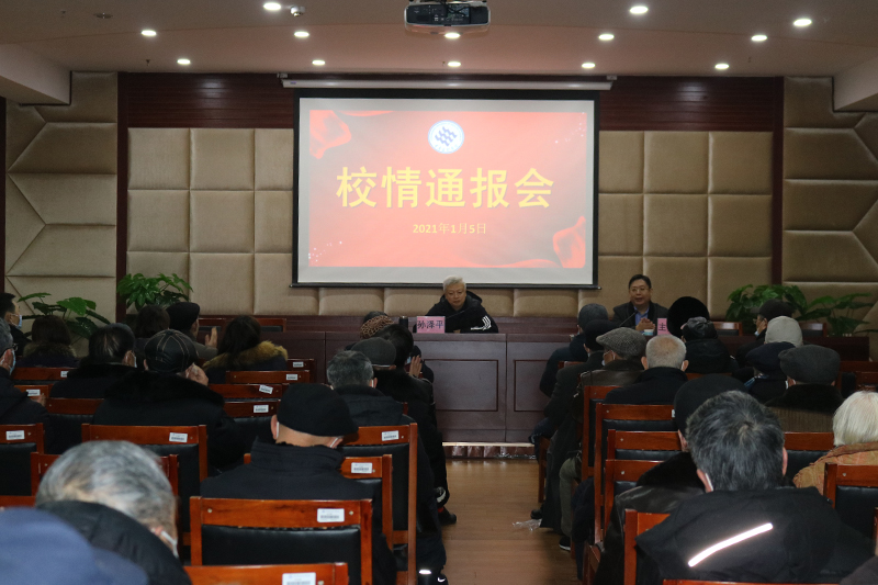 1月5日上午,学校党委书记孙泽平在晚晴苑306多功能厅向离退休老同志通报校情。离退休工作处副处长黄贵懿主持会议。