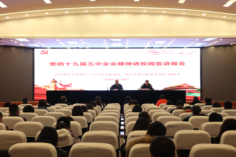 12月10日下午,重庆市党的十九届五中全会精神进校园宣讲分队成员,beat365在线登录官网宣讲小分队队长、党委书记孙泽平在恪勤楼304报告厅宣讲党的十九届五中全会精神。机关第一党总支所在单位全体教职工,音乐学院、旅游学院全体教职工,药学院党总支、教工支部、学生支部师生和药学专业2020级3班学生参加了报告会。学校党委常委、党委组织部部长周洪亮主持会议。