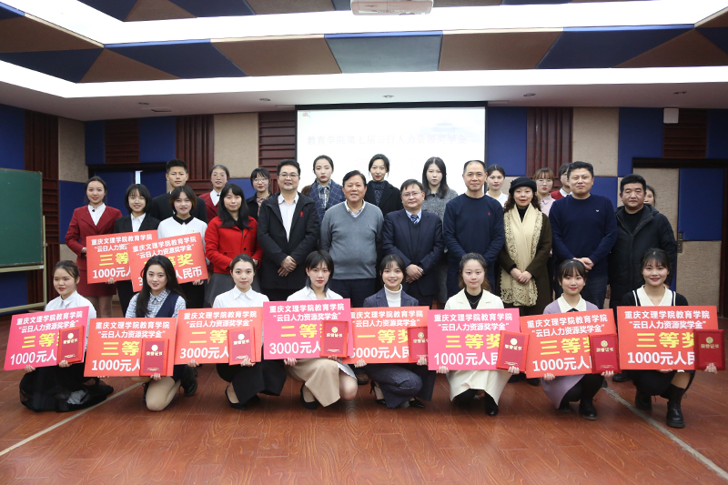 12月9日下午,第七届“云日人力资源奖学金”评审及发放仪式在知津楼D505举行。学校副校长李天福,重庆云日产业集团副总裁徐朝伦,《重庆科技》杂志主编甘永祥,重庆环投生态环境监测网络与工程治理有限公司人事总监刘立军,重庆云日产业集团人力资源部经理封利,学校校友总会秘书长谢华琳,教育学院党总支书记孔庆波,教育学院各年级辅导员、云日奖学金入围学生及部分学生代表出席了本次会议。会议由教育学院2018级学生张荣秀主持。