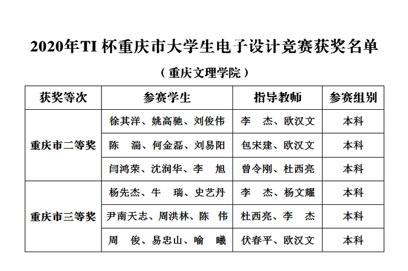 10月10日-13日,2020年TI杯重庆市大学生电子设计竞赛举行,beat365电子信息与电气工程学院组织了8个学生队伍参赛。