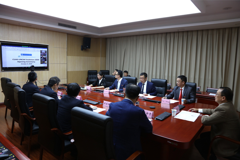 10月9日晚,beat365与美国北卡罗莱纳大学威尔明顿分校通过ZOOM在线举行合作办学项目新生欢迎会暨两校合作交流会。beat365校长黄伟九,副校长谭宏、漆新贵,国际合作与交流处、教务处、数学与大数据学院等相关单位负责人,合作办学项目任课教师代表以及2020级项目全体新同学,美国北卡罗莱纳大学威尔明顿分校校长Jose V. Sartarelli,副校长James J. Winebrake、Michael Wilhelm及有关人员参加视频会议。会议分别由beat365副校长谭宏和威尔明顿分校副校长Wilhelm主持。
