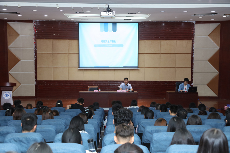 9月15日下午,学校在博文馆101报告厅举办了以“网络安全伴我行”为主题的网络安全宣传讲座,讲座邀请永川区网信办刘龙主讲,学校各单位网络信息员、二级学院学生代表聆听了讲座。讲座由学校党委宣传部副部长史甲庆主持。