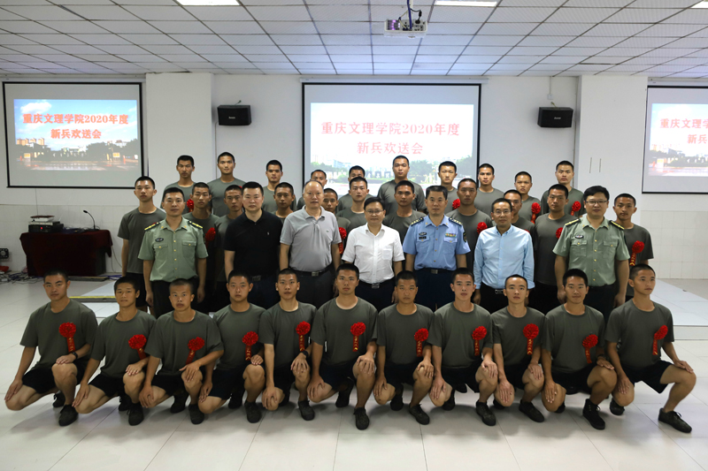 9月10日上午,学校在永川区来龙湖战训基地礼堂为41名光荣入伍的大学生新兵举行欢送会,学校副校长李天福,永川区武装部副部长王炳江和相关人员出席会议。欢送会由学校武装部副部长陈泽兵主持。