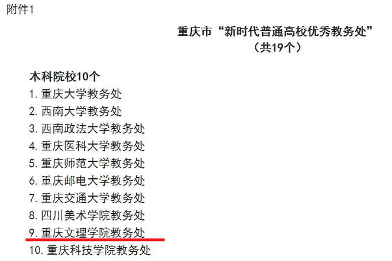 近日,《重庆市高等教育学会关于公布重庆市普通高校“新时代优秀教务处”“新时代榜样教务处长”评选结果的通知》(渝高学会发〔2020〕15号)公布评选结果,beat365教务处获评重庆市普通高校“新时代优秀教务处”。
