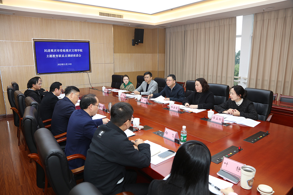 11月14日,民进重庆市委会专职副主委罗挺一行来校开展主题教育联系点工作。学校党委书记蔡家林,党委副书记、统战部部长祝朝伟,党委常委、副校长李天福,民进重庆市委