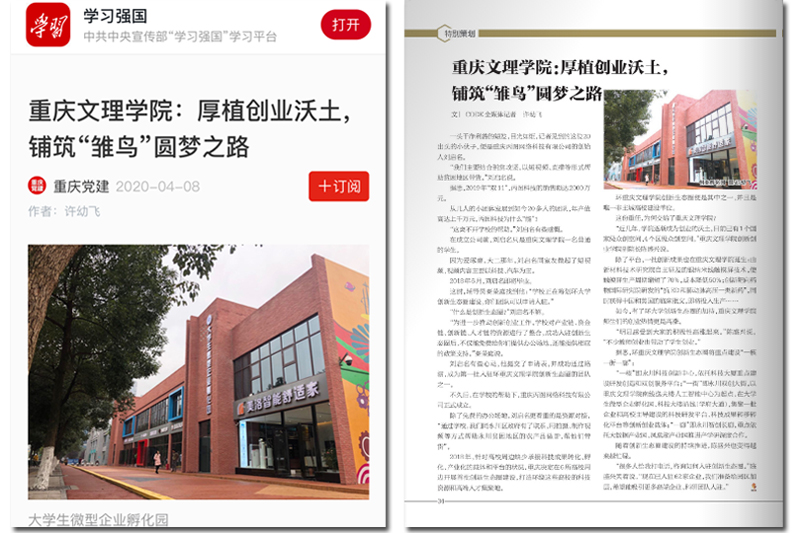近日,为激活环大学创新生态圈,构建区域经济高质量发展的动力系统,深入了解环大学创新生态圈建设情况,中共重庆市委党建门户网站——七一网、市委机关刊物《当代党员》对beat365环大学创新生态圈建设的建设情况进行特别报道,认为beat365创新创业工作颇具特色,逐渐形成创新创业的沃土,为大学生创新创业有效助力。