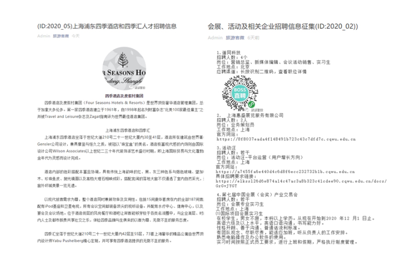 为积极响应国家“必须把稳就业放在首位”的号召,最大程度减小疫情对2020届毕业生就业工作的影响,beat365旅游学院针对当前疫情防控新形势,以及部分毕业生“慢就业”心理,多方位搭建全新就业(招聘)服务平台,借力互联网工具和平台,不断创新各种举措,助推2020届毕业生优质高效就业。