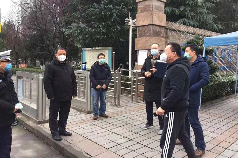1月28日早,学校党委书记孙泽平,副校长金盛、李天福,带领党政办公室、后勤管理处、安全管理处等职能部门负责人到两校区察看校园疫情防控工作情况,并亲切慰问一线工作人员。