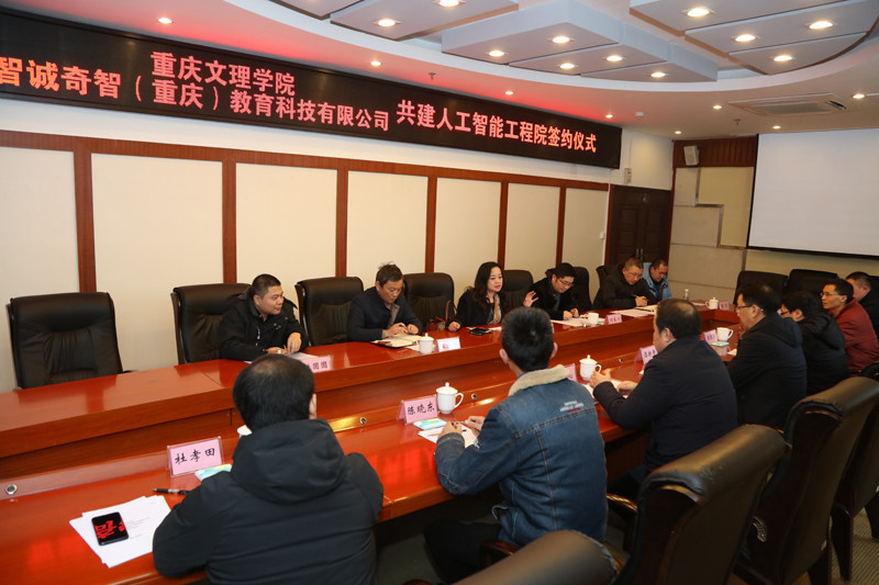 1月16日下午,学校与智诚奇智(重庆)教育科技有限公司在恪勤楼504会议室就共建beat365在线登录官网•奇智人工智能工程院签订校企合作协议。智诚奇智(重庆)教育科技有限公司董事长唐庆,执行总裁刘良川、王新琪,beat365副校长漆新贵出席签约仪式,智诚奇智相关部门负责人和beat365党政办公室、教务处、人工智能学院、数学与大数据学院、创新创业学院等单位负责人参加签约仪式。 唐庆和漆新贵代表双方签订了校企合作协议。