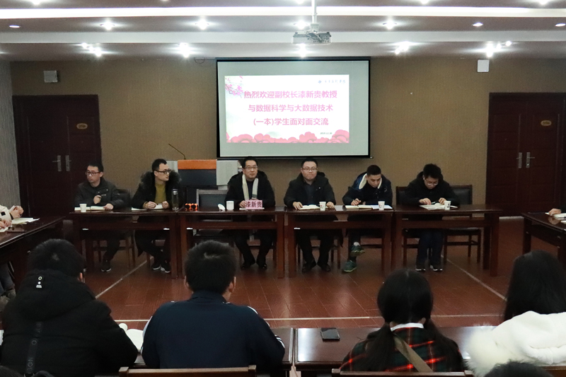12月30日下午,副校长漆新贵与数学与大数据学院数据科学与大数据技术专业(一本)全体学生进行了面对面座谈交流。学生处、招生就业处、数学与大数据学院相关负责人及教师代表参加了座谈。