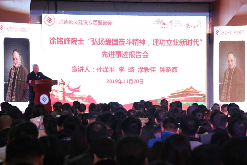 为切实加强和持续改进师德师风建设,全面提升教师师德素养,学习缅怀涂铭旌院士,学校于11月20日下午在红河A区学生活动中心举行了2019年师德师风建设专题报告会暨涂铭旌院士“弘扬爱国奋斗精神,建功立业新时代”先进事迹宣讲会,各二级单位教师代表参会。报告会由纪委书记罗茂主持。