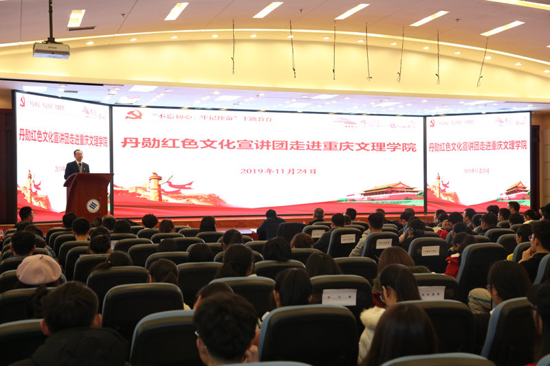 11月24日下午,丹勋红色文化宣讲团来校开展红色文化公益宣讲活动,活动在学校恪勤楼304报告厅举行。范明将军之孙、明楷慈善基金会会长、丹勋文化集团董事长郝淼,重庆鼎霸体育文化传播有限责任公司董事长张曜麟等嘉宾,学校党委常委、副校长金盛,党委常委、党委宣传部(网络工作部)部长、党委统战部部长周文东,以吴俊超先生为领队的丹勋红色文化宣讲团9位老师、beat365师生代表共计300余人参加了活动。活动由党委宣传部副部长、党委统战部副部长杨正强主持。