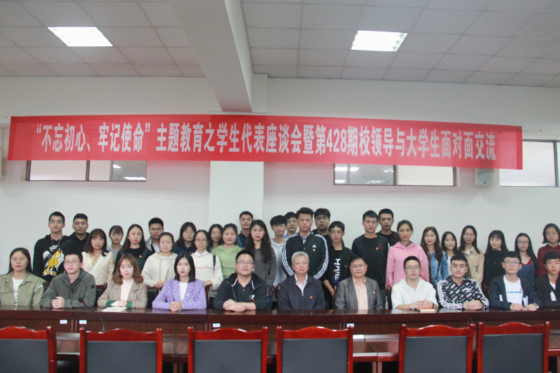 根据学校党委“不忘初心、牢记使命”主题教育调查研究、检视问题和整改落实工作安排, 10月14日下午,学校在学生事务服务中心303会议室组织召开了学生座谈会暨第428期校领导与大学生面对面交流。学校党委书记孙泽平,党委常委、副校长李天福,学生处有关人员、二级学院学生代表等共40余人参加了座谈交流。会议由学生处处长钱闾建主持。