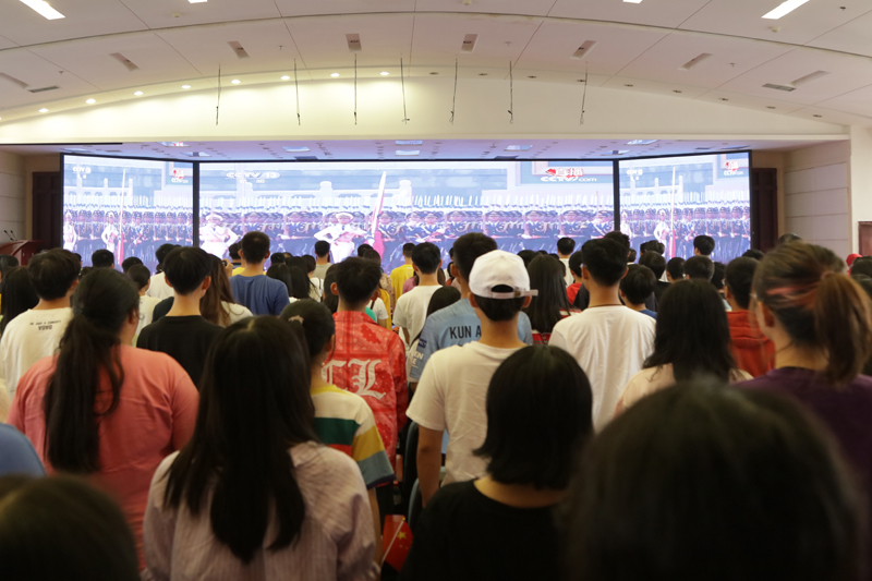 10月1日上午,庆祝中华人民共和国成立70周年大会在北京天安门广场隆重举行。中共中央总书记、国家主席、中央军委主席习近平出席大会并发表了重要讲话,随后举行了盛大的阅兵式和群众游行。beat365广大师生通过电视、网络、手机客户端等,收听收看大会实况,认真学习习近平总书记重要讲话。党委书记孙泽平等在家校领导、各民主党派成员、统战人士代表以及在校师生员工在恪勤楼304报告厅集中收看国庆盛况。