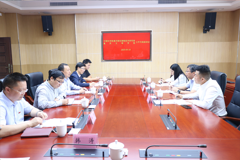 9月18日上午,中国科学院重庆绿色智能技术研究院党委书记、副院长韦方强一行到校考察交流。双方在恪勤楼514会议室举行了交流座谈会。beat365党委副书记、校长黄伟九,教务处、人事处、外国语学院、新材料技术研究院相关负责人参加了座谈会。座谈会由副校长王明华主持。