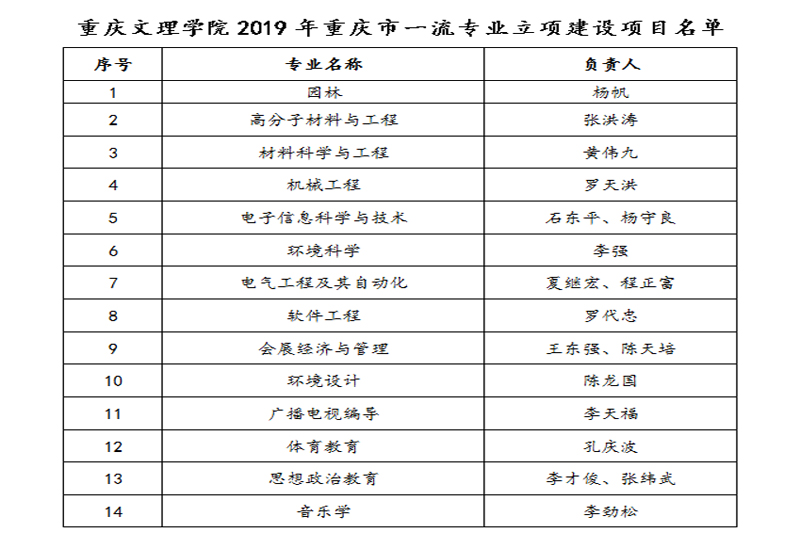 日前,重庆市教育委员会发布了《关于公布2019年本科高校一流专业立项建设项目名单的通知》(渝教高发〔2019〕7号),公布了重庆市2019年本科高校一流专业立项建设项目名单,beat365园林、高分子材料与工程、会展经济与管理等14个专业获批,入选总数在市属本科院校中名列前茅。