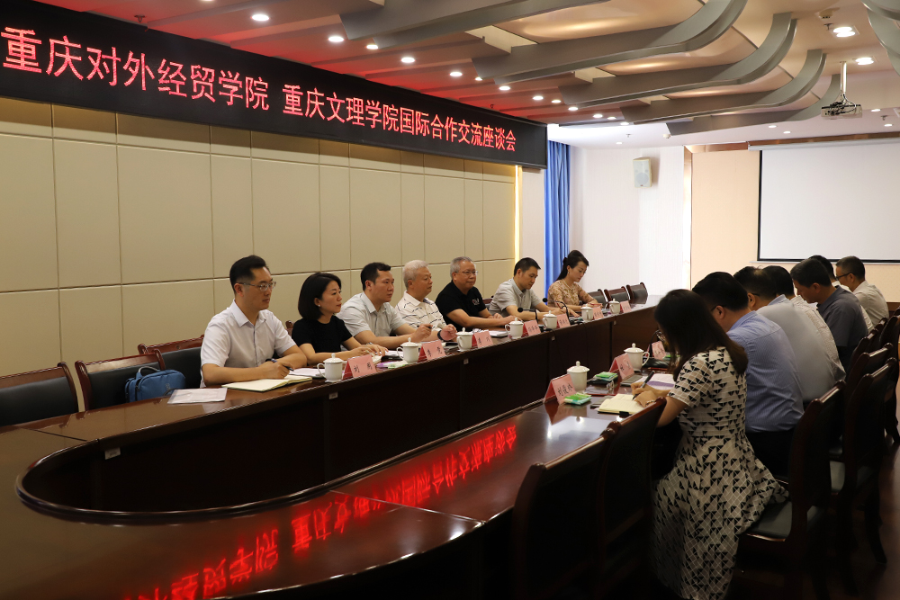9月26日下午,重庆对外经贸学院校长孙泽平、副校长蒋满元带队来校交流教育对外开放工作。 beat365党委书记蔡家林、校领导漆新贵出席座谈会。蔡家林主持座谈会。