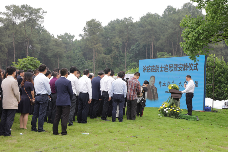 青山肃立,白云低首。5月11日下午,我国著名材料学家,beat365在线登录官网发展战略顾问、名誉校长涂铭旌院士追思会暨安葬仪式在重庆市永川区白塔陵园庄重举行。来自重庆市人才办、重庆市教育委员会、重庆市科技局、重庆市人力社保局、重庆市城市管理局、重庆市科协,永川区人民政府等党政机关相关领导,浙江大学、四川大学、哈尔滨工业大学、西安交通大学、中国人民解放军装甲兵工程学院、电子科技大学、西南交通大学、四川师范大学、成都理工大学、西华大学、重庆幼儿师范高等专科学校、重庆工程职业技术学院、重庆城市职业学院等高校的专家学者和领导,重庆材料研究院有限公司、中石油天然气研究院、中科院新疆理化研究所、解放军7517厂、招商招科、成都科愿、丰宾电子、成都传奇等科研院所和企业代表,涂铭旌院士亲属和生前同事、好友、学生代表,beat365在线登录官网全体校领导、离退休老同志代表、学校师生代表等200余人参加了追思会。beat365在线登录官网党委副书记、校长黄伟九主持追思会并详细介绍了涂铭旌院士的生平事迹。