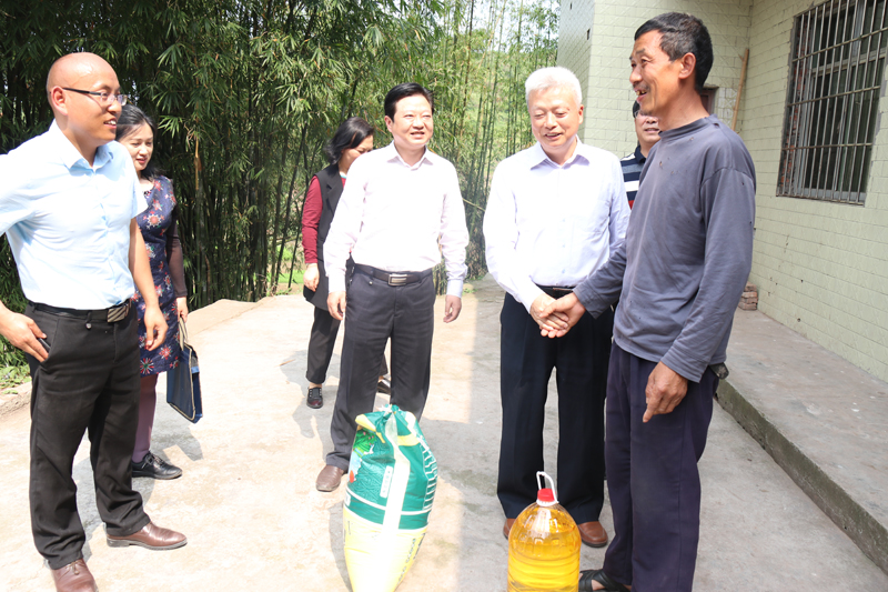4月17日下午,学校党委书记孙泽平带领教工部等相关部门负责人和机关第一党总支、新叶公司党总支部分党员同志到永川区宝峰镇龙凤桥村考察调研,慰问学校驻村干部,走访慰问贫困户,实地开展脱贫攻坚工作。宝峰镇党委书记宋波、镇长黄代攀、学校选派宝峰镇龙凤桥村驻村第一书记李兴春等陪同考察调研。