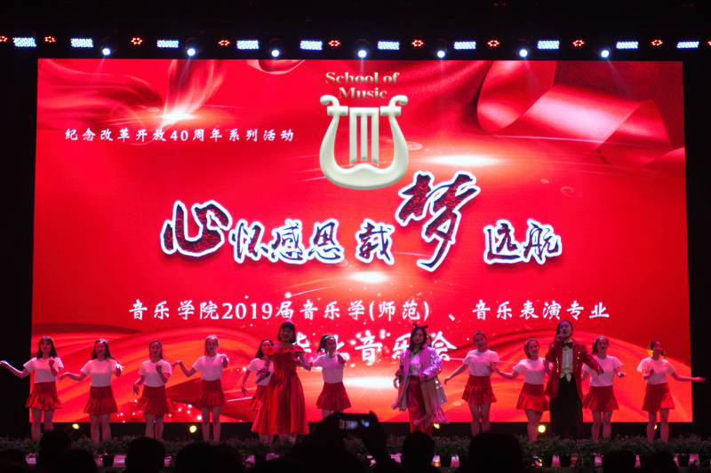 12月25日晚,音乐学院2019届音乐学、音乐表演专业“心怀感恩 载梦远航”毕业音乐会,在星湖校区活动中心四楼拉开帷幕。校长黄伟九、副校长谭宏、学校关工委常务副主任刘定云,永川区音乐家协会名誉主席王自权、主席陶亚平及学校各教学单位和非教学单位负责人,音乐学院党政领导、全体教师近1000余名观众共同观看了演出。