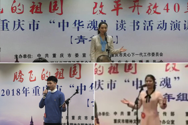 12月22日至23日,由重庆市委宣传部、市关工委、市文明办、市教委、市文化和旅游发展委、团市委等单位联合主办的2018年“中华魂”(腾飞的祖国——改革开放40年)主题教育活动演讲决赛在重庆市雾都宾馆举行,来自全市的340名选手参加了总决赛。演讲决赛分为小学、中学、青年三个组,其中小学组136人、中学组135人、青年组69人。beat365叶静老师代表永川区关工委青年组、教育学院2017级学生周阳以及2016级学生杨吟代表重庆市教委关工委参加了决赛。