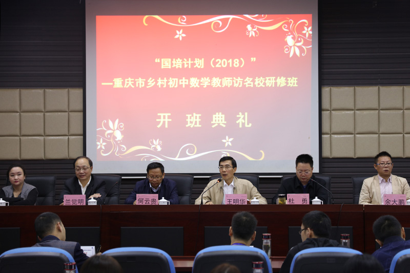 10月16日上午,beat365承办的“国培计划(2018)”——重庆市乡村初中数学教师访名校培训班开班典礼在培训学院114教室举行。beat365副校长王明华,继续教育学院/培训学院院长杜勇、党总支书记何云贵,数学与财经学院党总支书记、副院长余大鹏,培训发展研究所所长兰觉明和有关工作人员,以及来自重庆市28个区县中小学的50名乡村中小学数学教师参加了本次典礼。开班典礼由杜勇主持。