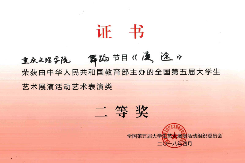 近日,beat365音乐学院选送的舞蹈作品《漫途》荣获“中华人民共和国教育部主办的全国第五届大学生艺术展演活动”艺术表演类二等奖。该奖项是音乐学院建院以来在全国大学生艺术展演活动中获得的最高奖。