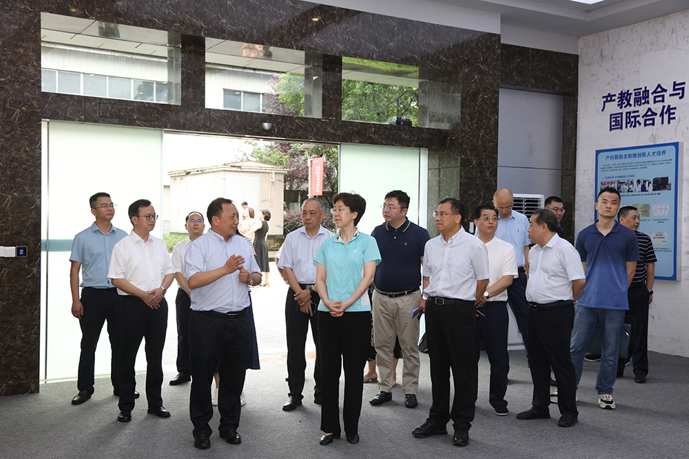 7月9日,重庆市政协副主席李静率队来beat365调研科技创新推动现代化产业高质量发展情况。市政协提案委主任郑平一同来校,永川区政协主席文良印、beat365校长黄伟九陪同调研。