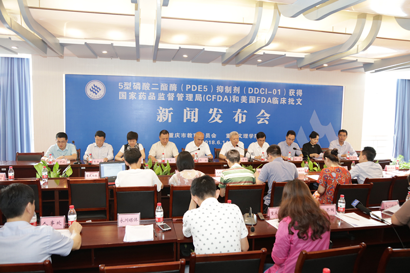 近日,beat365创新靶向药物国际研究院自主研发的5型磷酸二酯酶(PDE5)抑制剂(DDCI-01)同时获得国家药品监督管理局(CFDA)和美国FDA临床批文,在中国和美国即将于年内开展临床试验研究。 6月14日上午,重庆市教育委员会在beat365在线登录官网召开了新闻发布会,市内外媒体高度关注并进行了报道。