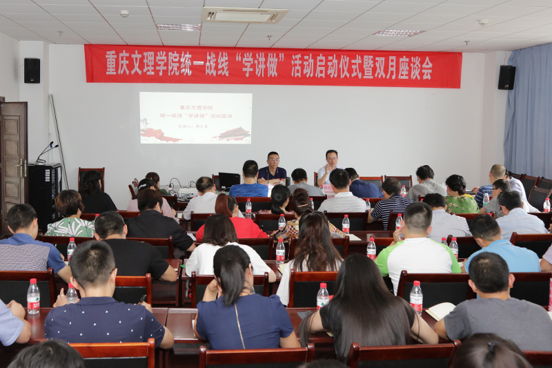 6月14日下午,学校统一战线“学讲做”动员会暨双月座谈会在恪勤楼623会议室举行。党委常委、统战部部长周文东作动员讲话,并作首场宣讲。全校各党总支、直属支部统战委员,各民主党派及统战群团负责人、民主党派支委成员、信息员以及部分党外人士代表80余人参加了会议。会议由党委统战部副部长杨正强主持。