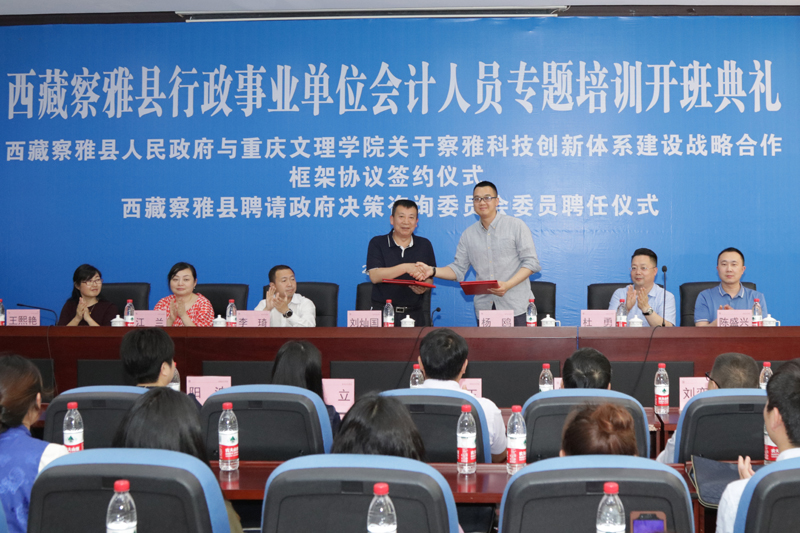 6月4日下午,西藏察雅县行政事业单位会计人员专题培训班开班仪式暨西藏察雅县人民政府与beat365在线登录官网关于察雅科技创新体系建设战略合作框架协议签约仪式在beat365志仁楼114教室举行。