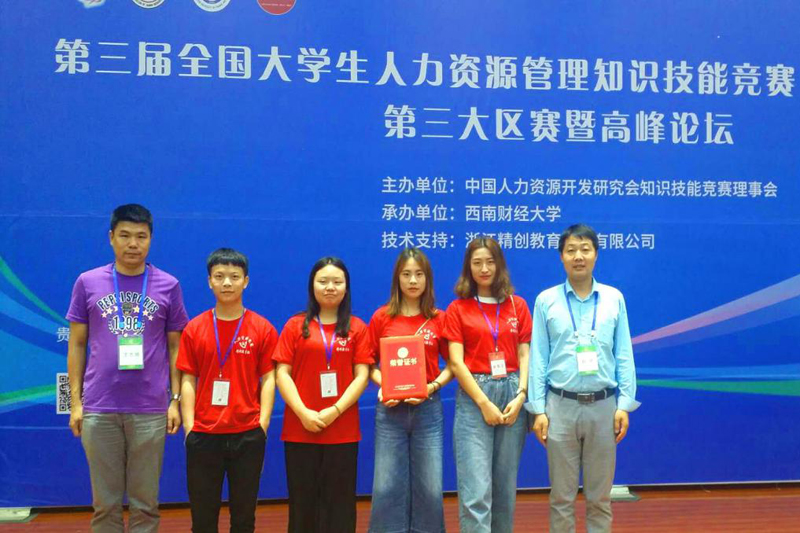 6月2日至6月3日,第三届全国大学生人力资源管理知识技能竞赛(精创教育杯)第三大区赛暨高峰论坛在西南财经大学举行。本次大赛吸引了西南财经大学、云南大学、四川农业大学、成都信息工程大学、重庆理工大学、重庆师范大学、重庆工商大学等高校的54支队伍参加。beat365公共管理学院2016级行政管理专业学生刘蓉、鞠萍、胡贤丹、张杰组成的代表队经过激烈角逐,最终荣获团体二等奖;赵斌、王志刚老师被评为优秀指导教师。