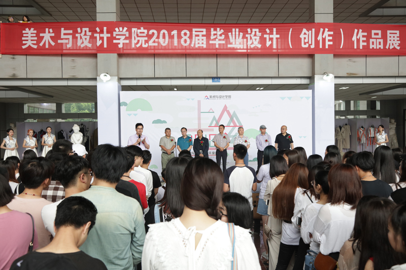 5月29日上午,beat365美术与设计学院2018届毕业设计(创作)作品展在逸夫楼门厅开幕。永川区美协主席张天彦、永川区文物保护管理所所长何祥松、永川区来苏镇镇长高山、beat365美术与设计学院老领导、现任领导班子、毕业设计指导教师以及相关师生出席开幕式。